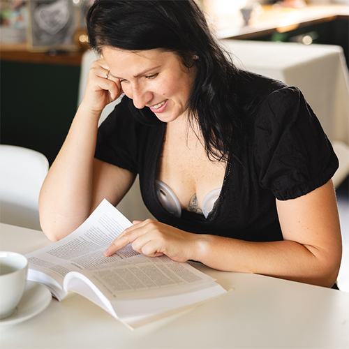 Наши коллекторы очень незаметны. Мы разработали их таким образом, чтобы они идеально помещались в бюстгальтер. Они легкие и плоские.